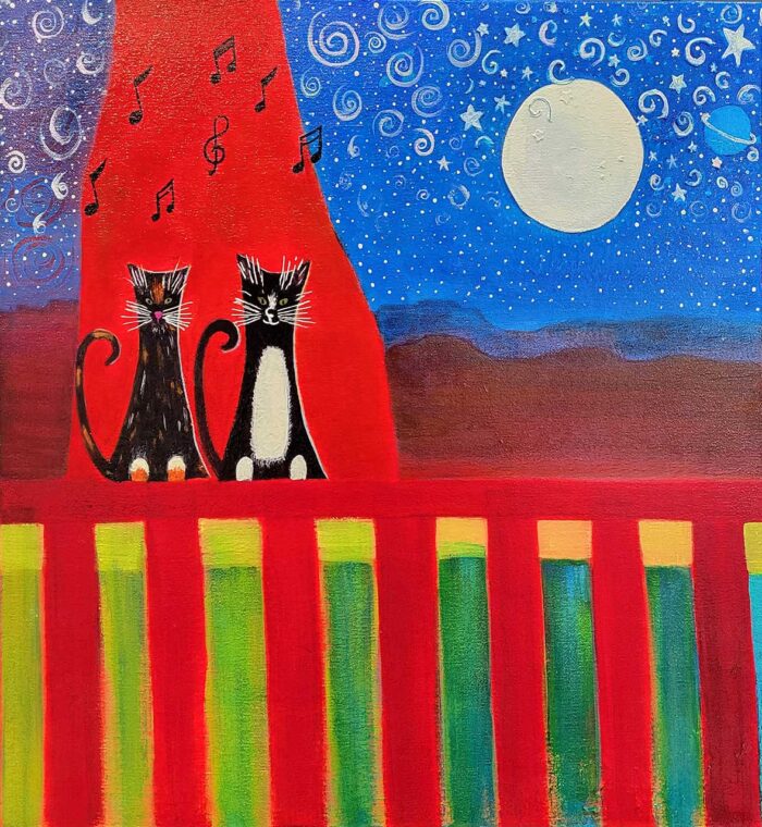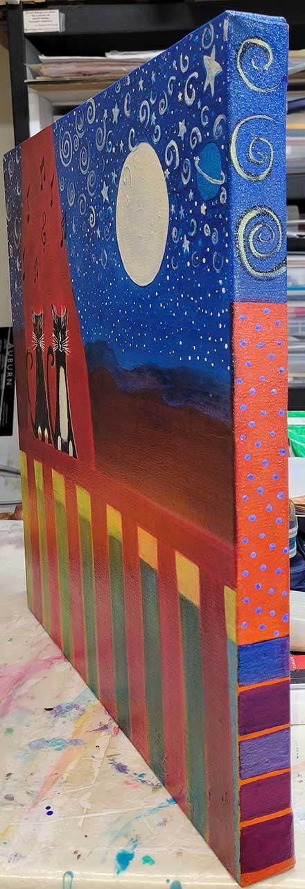 Inspired by Gypsy and Turbo and the red rocks of Sedona. A whimsical piece for the young at heart! 20″ x 20″ on gallery wrap canvas, sides painted, ready to hang.